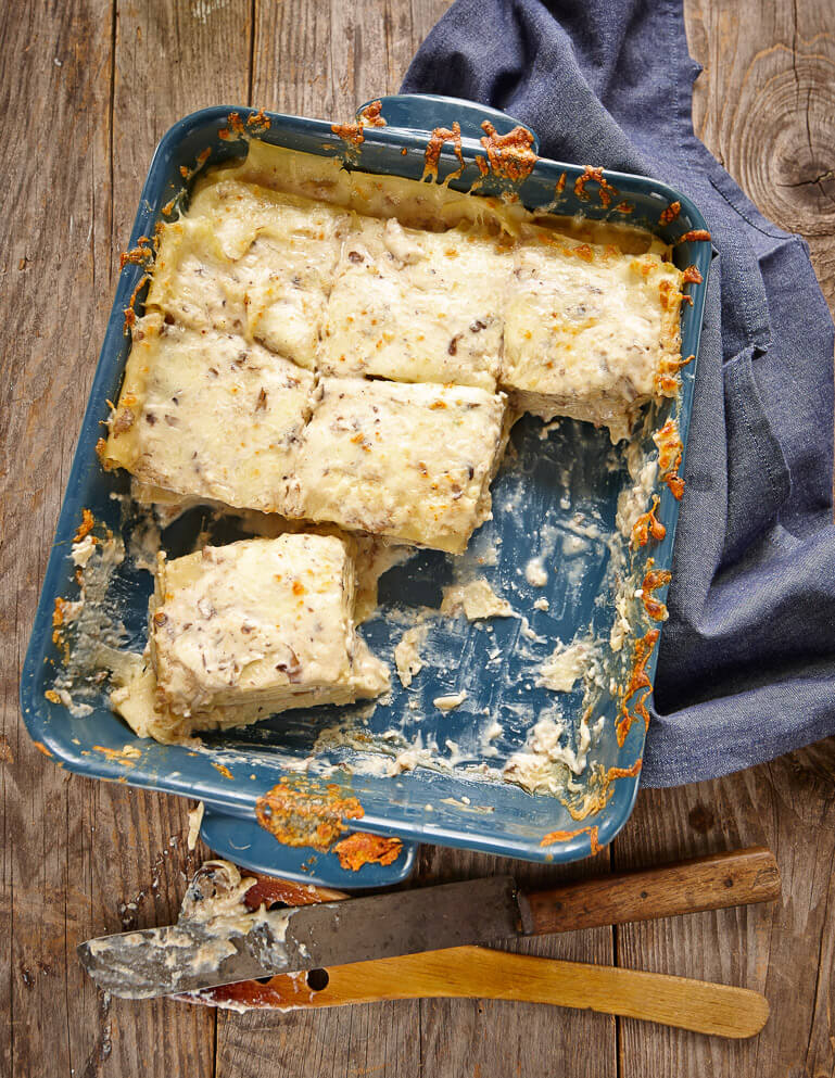 Made with all natural ingredients and no additives or preservatives. A simple but delicious recipe - sauteed onions, garlic and mushrooms in our signature white wine reduction. Alternating layers of paper thin fresh egg pasta with a creamy Alfredo style sauce. A blissful combination of 35 percent cream, milk, salt, and pepper.